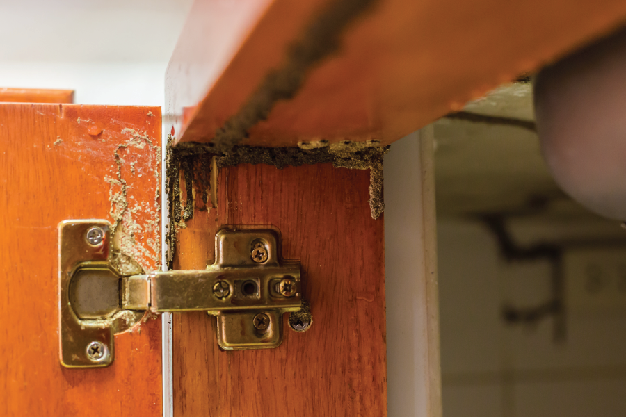 Mối đất (mối ngầm) khi di chuyển từ dưới lòng đất lên để tìm kiếm thức ăn sẽ xây dựng các đường hầm bằng đất, nước bọt và các mảnh vụn hữu cơ để giữ ẩm và bảo vệ chúng khỏi kẻ thù. Hãy kiểm tra kỹ các vị trí như khe tường tiếp giáp khung cửa, bản lề, chân khuôn cửa. Nếu thấy những đường đất ẩm, liên tục và không dễ bị đứt gãy, đó chính là đường đi của mối.